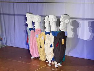 Cusanus als vielseitiger Denker, verkörpert durch das vielköpfige Wesen, durchzog das großartige Bühnenstück, das während des Schulfestes aufgeführt würde (Foto: Julia Sterk).
