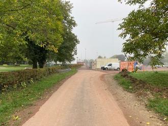Der Fußweg zwischen dem Minigolfplatz und Schwimmbadareal in Richtung Sportzentrum ist gesperrt (Foto: Markus Müller).