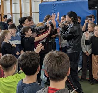 Das pädagogische Konzept, das Jon Alien in Zusammenarbeit mit Respekt-Coaches und als Dozent für Kinder- und Jugendprojekte entwickelt hat, hat die Zielsetzung mit Songs, über Themen wie Respekt, Toleranz und Zusammenhalt, die Jugendlichen zum Nachdenken anzuregen und zum Handeln zu motivieren. Die Botschaft kam bei den Schülerinnen und Schüler an und so feierten viele mit. Nach einem 25-Minuten-Auftritt, blieb Jon Alien noch für Autogramme und Selfies. Der Künstler zeigte sich gerührt vom „Einsatz“ der Jugendlichen.