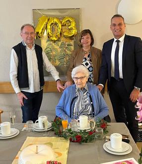 Alwine Hansen, älteste Bürgerin der Stadt Wittlich, feierte am Montag, 14. Oktober 2024 ihren 103. Geburtstag. Bürgermeister Joachim Rodenkirch gratulierte Alwine Hansen am vergangenen Montag gemeinsam mit ihrer Tochter Brigitte und ihrem Schwiegersohn Hermann Wagner zu ihrem 103. Geburtstag. Den Glückwünschen schlossen sich zwei Enkelkinder mit Partnern sowie drei Urenkel an.