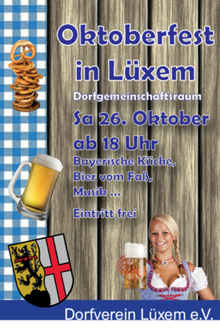 Nach alter Tradition ziehen in Wittlich-Lüxem die Kinder mit Bollerwagen zum Erntedank durch den Ort. Alle Sammler treffen sich am Samstag, 26. Oktober, um 10 Uhr auf dem Pfarrhof in Lüxem. Nach der Einteilung der Gruppen sammeln sie an den Haustüren Obst, Gemüse, Marmelade, Eingemachtes. Gerne können auch Erntegaben vor der Haustüre bereitgestellt werden. Das Gesammelte wird am gleichen Tag - Samstag, 26. Oktober, ab 18 Uhr - auf dem Pfarrhof zugunsten eines guten Zwecks verkauft. Zur gleichen Zeit lädt der Dorfverein zum traditionellen Oktoberfest im Dorfgemeinschaftsraum ein.