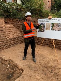 Bei den Bauarbeiten in der Oberstraße auf dem Gelände des ehemaligen Lokals Kaienburg wurden die Reste eines großen römischen Gebäudes gefunden. Nun, nach Ende der archäologischen Grabungen, bot der Ausgrabungsleiter, Dr. Lars Blöck, Generaldirektion Kulturelles Erbe im Rheinischen Landesmuseum Trier, einem kleinen Kreis interessierter Bürgerinnen und Bürger eine Führung über das Ausgrabungsgelände an.