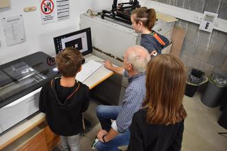 Einen Makerspace-„Rundumschlag“ erhielt die Gruppe des JuKuZ Bernkastel-Kues, für die der 26. Oktober als geschlossene Veranstaltung reserviert worden war, von Daniel Scharfbillig. Nach einem Überblick über die Räumlichkeiten, Geräte und Möglichkeiten des Makerspace wurden die Kids mit den 3D-Druckstiften und dem Lasercutter selbst aktiv und schufen eigene Kunstwerke und kleine Stempel.