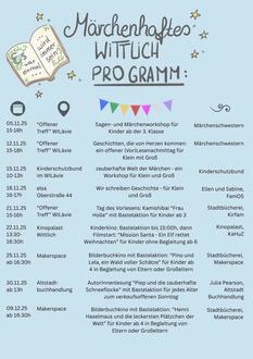 Die beliebte Veranstaltungsreihe Märchenzeit kehrt zurück: Im November und Dezember wartet eine vielseitige, fabulöse Mischung aus Angeboten auf Klein und Groß. Das Programm bietet Lesungen, Aufführungen, Ausstellungen und eine Reihe von Aktionen und Spielen, die Farbe und Freude in die dunklen Monate bringen sollen.
