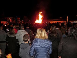 Auf der eingezäunten Rasenfläche wird das Martinsfeuer abgebrannt, St. Martin reitet um das Feuer und begrüßt die teilnehmenden Kinder und Erwachsene.