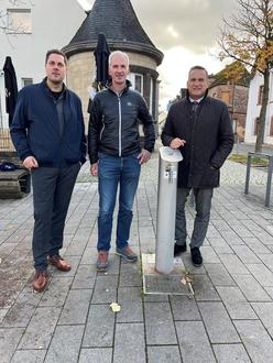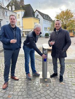 Trinkwasserbrunnen am Platz an der Lieser, am Alten Rathaus auf dem Marktplatz und auf dem Ottensteinplatz: V.l.n.r: Stellvertretender Werkleiter Martin Kurzweil, Jürgen Jakobs, technischer Angestellter bei den Stadtwerken und Bürgermeister Joachim Rodenkirch (Fotos: Sebastian Klein).