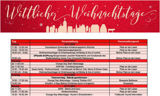 Begleitet von stimmungsvoller Live-Musik von ansässigen Vereinen und regionalen Bands, können Besucherinnen und Besucher die festliche Atmosphäre genießen und sich auf das bevorstehende Weihnachtsfest einstimmen. Eine Vielzahl an Kinderbelustigungen rund um Tiere wie Alpakas und Lamas im Stadtpark, sowie Greifvögel und Schlittenhunde runden das diesjährige Unterhaltungsprogramm ab. Auch die städtischen Einrichtungen wie Schulen, Kindertagesstätten und verschiedene Organisatoren sind mit ihren Darbietungen vor Ort.