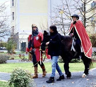 Zum 1. Mal kam St. Martin mit Pferd, er führte den Umzug mit Musik durch die Gärten der Seniorenresidenz.