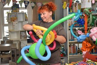 In der Stadtbücherei wurde neben dem üblichen Angebot ein buntes Aktionsprogramm für Klein und Groß geboten: Bei Kamishibai und Bilderbuchkino wurden spannende Geschichten erzählt, beim Glücksrad tolle Preise verlost und in der Onleihe-Sprechstunde alle Fragen rund um die Online-Dienste der Bücherei beantwortet. Luftballon-Künstlerin Nicole verzauberte besonders die Jüngeren mit ihrem kreativen Talent.