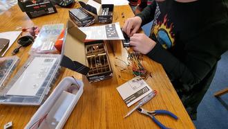 Der eintägige Schnupperkurs „Elektronik für Einsteiger“ im Makerspace musste coronabedingt von den Herbstferien auf Samstag, den 12. November, verschoben werden. Dennoch standen alle angemeldeten Jugendlichen pünktlich um 10 Uhr auf der Matte, um sich unter Anleitung von Hans-Peter Pesch mit den Grundlagen der Elektronik vertraut zu machen. Erstmalig war auch einer der neuen Juniortrainer, Felipe König, als Assistent mit von der Partie. Die meisten der 14-18jährigen hatten vorab keine Erfahrungen mit dem Themenfeld Elektronik. Wissbegierig und engagiert probierten sie in praktischen Versuchen den Umgang mit Transistor, Leuchtdiode, Widerstand und Kondensator aus und bauten erste Schaltpläne nach. Ein rundum gelungener Einstieg, der Lust machte, das gewonnene Wissen zu vertiefen. Kein Problem, sind doch weitere Schnupper-, aber auch fortgeschrittene Einsteigerkurse im Elektronikbereich bereits in der Planung des Makerspace-Programms für 2023.