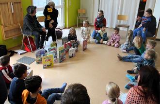 Die Kita-Kinder wählen schließlich ihr Lieblingsbuch und bereiten eine kleine Präsentation vor. Dies kann eine Bastelarbeit, eine Klanggeschichte oder auch ein Theaterstück sein – der Fantasie sind hier keine Grenzen gesetzt. Im Januar übergeben die Kinder die Rucksäcke in der frisch renovierten Bücherei an die nächsten Kitas und präsentieren ihren Favoriten in Form der vorbereiteten Darbietung.