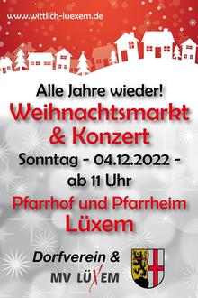 Neu in diesem Jahr ist ein weihnachtliches Konzert des Musikverein Lüxem um 15 Uhr im Pfarrheim. Um die Energie zur Beheizung der Kirche einzusparen wandelt er das traditionelle Advents- und Kirchenkonzert in ein Konzert im Pfarrheim um. Eröffnet wird es mit weihnachtlichen Weisen unter Leitung von Stefan Barth und internationalen Weihnachtslieder zusammen mit dem großartigen Sänger Freddy Coulanges.