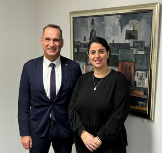 Die neue Vorsitzende Chrysanthi Ntafopoulou zu Besuch bei Bürgermeister Joachim Rodenkirch (Foto: Rainer Wener).