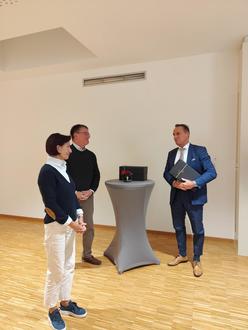Vorstandesvorsitzender Joachim Rodenkirch verabschiedet die Beiratsvorsitzenden Elfriede Marmann (Bereich Sport) und Michael Wagner (Bereich Kultur) (Foto: Christiane Schmitz-Hayer).