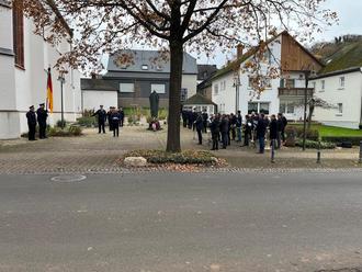 Die Feier zum Volkstrauertag fand am 16.11.2025 am Ehrenmal bei der St. Nikolauskirche in Wittlich-Neuerburg unter Mitwirkung der Freiwilligen Feuerwehr Einheit III Neuerburg-Dorf und dem Musikverein Bombogen statt. Die feierliche Zeremonie wurde begleitet von zahlreichen Bürgerinnen und Bürgern. Die Ansprache hielt Ortsvorsteher Udo Reihsner (Foto: Privat).