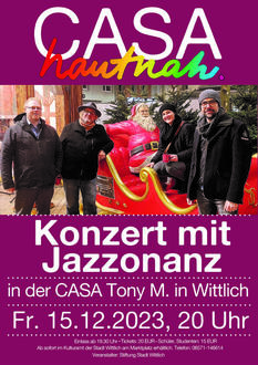 Die Stiftung Stadt Wittlich präsentiert mit der Formation „Jazzonanz“ am Freitag, dem 15. Dezember 2023, ab 20 Uhr in der CASA Tony M. das Gegenteil!