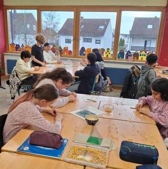 Auf eine „Reise ins Zahlenland“ durften sich die Viertklässler der Grundschulen freuen, die am Schnuppernachmittag der Clara-Viebig-Realschule plus teilnahmen. Die 5. und 6. Klassen der Schule hatten diese „Reise“ am Vormittag schon mit viel Begeisterung absolviert und durften die Gäste am Nachmittag in Kleingruppen nun auf der gleichen „Reise“ als Helferinnen und Helfer begleiten. Die Schülergruppen waren eingebunden in eine Geschichte, in der sie im „Zahlenland“ von Zauberer Ziferion vor verschiedene Aufgaben gestellt wurden, die sie meistern mussten. Dabei erstellten die Kinder Zahlenmemories und bauten im Werkraum Würfel, in die sie mit einem Lötkolben die „Augen“ einbrannten. Eine ruhige Hand und räumliches Vorstellungsvermögen war dann beim Bau geometrischer Körper aus Kichererbsen und Zahnstochern gefragt. Dann wurde es knifflig, als die „Reisenden“ mathematische Rätsel mit Hilfe von Lernapps lösen mussten. Nicht nur der Kopf, sondern auch die Muskeln wurden in der Turnhalle bei Bewegungsspielen rund um das Thema „Rechnen und Zahlen“ trainiert. Die „Reise“ endete mit einem Spiel zum Thema „Taschengeld“. Zum Schluss erhielten alle Grundschulkinder ihre selbst hergestellten Objekte und wurden als „Zahlenmeister“ mit einer kleinen Geschenktüte belohnt.