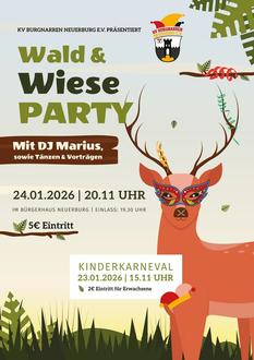 Unter dem Motto „Wald & Wiese“ gibt’s einige karnevalistische Beiträge und viel Party.