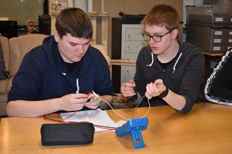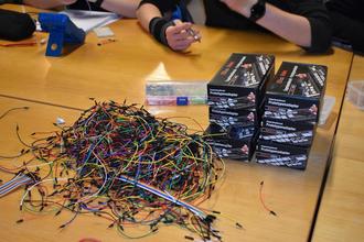 Die Schüler der Leistungskurse Elektrotechnik und Informatik der 12. Jahrgangsstufe des Beruflichen Gymnasiums Wittlich besuchten am 27. Januar mit ihren Lehrern den Makerspace. Praxisbezug und Interaktivität prägten den Vormittag, an dem Hans-Peter Pesch den Schülern Möglichkeiten des Zusammenwirkens elektronischer Bauteile vorführte. Die „Freshmen“ vertieften ihre theoretischen Kenntnisse, indem sie selbst Widerstände, Leuchtdioden, Fotowiderstände und Transistoren zu Baugruppen auf Breadboards zusammensteckten und damit deren Funktionalität nachvollziehen konnten. Zum Abschluss gab es einen schnellen Rundgang durch den Makerspace mit Kurzvorstellung der Maschinen und Geräte: Und schon waren die ersten Ideen für eigene Projekte im Rahmen der Offenen Werkstattzeiten geboren.
