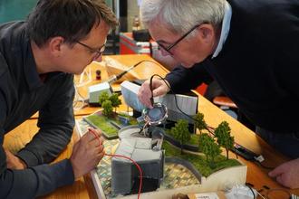 Holger Günter (links) und Hans-Dieter Pesch beim Dioramabaukurs.