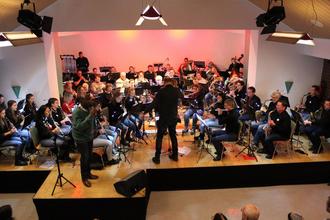 Orchester des Musikverein Lüxem unter Leitung von Stefan Barth und Sänger Freddy Coulanges