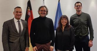 Bürgermeister Joachim Rodenkirch heißt den neuen Mitarbeiter Andre Rieder (2.v.l.) gemeinsam mit Sachgebietsleiter Michael Schmitt (r.) und der Personalratsvorsitzenden Christiane Schmitz-Hayer herzlich willkommen (Foto: Emil Haupt).