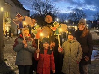 Was das Wetter noch nicht vermochte, schaffte die jährlich zu den Weihnachtstagen stattfindende Märchenrallye mit Leichtigkeit, nämlich Winterwunderland-Stimmung aufkommen zu lassen. Am vergangenen Samstag, 7. Dezember, versammelten sich kleine und große Märchenfreund:innen am Platz an der Lieser und machten sich auf, drei Märchen an unterschiedlichen Orten in der Innenstadt zu hören. Damit die Gruppen auch gut dorthin geführt werden konnten, überreichte der „Club der guten Taten“ mit Pia Wiersch drei nagelneu gestaltete, wunderschön bemalte Zwerge-Schilder, die den Weg leuchteten.