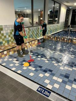 Restliche Reinigungsarbeiten im Kleinkinderbecken.