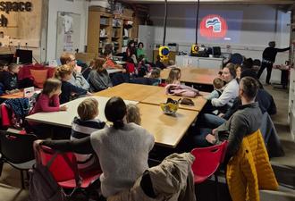 Eingebettet in das Programm „Märchenhaftes Wittlich“ fand in der Vorweihnachtszeit im Makerspace zweimal die „Geschichtenwerkstatt im Winter“ statt. Bei diesem Format wird zunächst mit dem Beamer ein Bilderbuch gezeigt und dazu vorgelesen. Im Anschluss gibt es für Kinder und Eltern eine zur Geschichte passende Bastel- und Werkarbeit. Und so wurden bei „Pino und Lela auf Schatzsuche“ unter Einsatz von Hammer und Kronkorken eifrig kleine Upcycling-Musikinstrumente gebastelt. Bei „Henni Haselmaus und die leckersten Plätzchen der Welt“ galt es, kleine Weihnachtsbaumanhänger aus dem Lasercutter individuell zu verzieren oder gleich die kleine Maus Henni selbst lebendig werden zu lassen. Da im Makerspace selbst nicht gebacken werden kann, gab es zum Trost noch Hennis Original-Butterplätzchen-Rezept zum Mitnehmen dazu. Zwei schöne Veranstaltungen für Kinder ab vier Jahren mit ihren Eltern (oder Großeltern), die so gut besucht waren, dass die „Geschichtenwerkstatt im Frühling“ bereits in Planung ist.