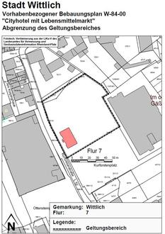Gemäß § 3 Abs. 2 BauGB (i.V. mit § 13a Abs. 2 BauGB) wird der Entwurf des vorhabenbezogenen Bebauungsplan W-84-00 "Cityhotel mit Lebensmittelmarkt“ mit der Begründung, dem Vorhaben- und Erschließungsplan (VEP), der artenschutzrechtlichen Vorprüfung und den Fachgutachten in der Zeit vom 02. Januar bis 06. Februar 2023 bei der Stadtverwaltung Wittlich, Schloßstraße 11, Zimmer 316a, während der Dienststunden (montags, dienstags, mittwochs von 8.30 Uhr bis 12.00 Uhr und von 14.00 Uhr bis 16.00 Uhr, donnerstags von 8.30 Uhr bis 12.00 Uhr und von 14.00 Uhr bis 18.00 Uhr, freitags von 8.30 Uhr bis 12.00 Uhr) öffentlich ausgelegt.