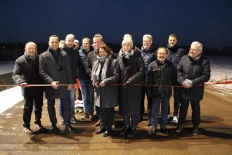 Bürgermeister Joachim Rodenkirch sowie die 1. Beigeordnete Elfriede Meurer konnten am Donnerstag, 15.12.2022, gemeinsam mit Mitgliedern des Stadtrates und Vertretern der ausführenden Baufirmen, Planern und Verwaltungsmitarbeitern die neue Erschließungsstraße im Gewerbegebiet III Nord für den Verkehr freigeben. Das Band zur Freigabe wurde bei Eiseskälte zerschnitten.