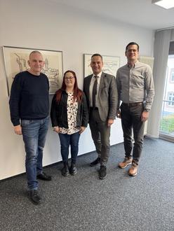 Bürgermeister Joachim Rodenkirch wünschte Melanie Erbes-Kindermann (2. v. l.) für ihre künftigen Aufgaben viel Erfolg. Den Wünschen schloss sich der Sachgebietsleiter Michael Schmitt (1. v. r) sowie der Vertreter für den Personalrat Michael Latz (1. v. l.) gerne an (Foto: Selina Schuler).