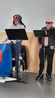 Einen unterhaltsamen und lustigen Nachmittag hatten die Seniorinnen und Senioren an ihrem monatlichen Treffen. Die Akteure Günther Hansen und Hans-Jürgen Schlax sorgten für manches Gelächter und Schmunzeln (Fotos: Privat).