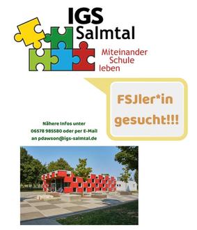 Die IGS Salmtal sucht wieder nach engagierten jungen Menschen, die Lust haben, ein Jahr lang an unserer Schule verschiedenste Bereiche des Schulalltags und die Arbeit mit Schülerinnen und Schülern kennenzulernen.