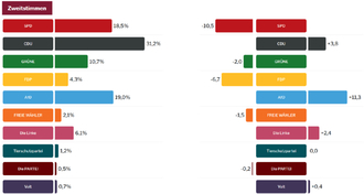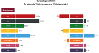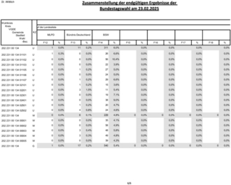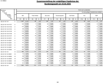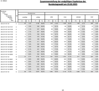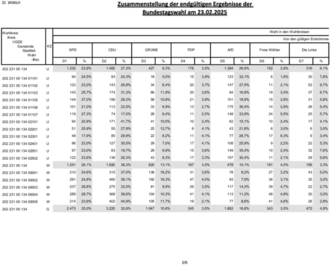 Nachstehend werden die Gesamtergebnisse für die Erst- und Zweitstimmen mit den jeweiligen Gewinnen und Verlusten gegenüber der Bundestagswahl 2021 dargestellt. Ebenso das Gesamtergebnis der Bürgermeisterwahl.