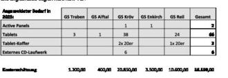Um eine weitere IT-Ausstattung in den Grundschulen zu gewährleisten und zudem dem Ziel näher zu kommen, jedem Schulkind ein eigenes Tablet zur Verfügung zu stellen, wurde Anfang dieses Jahres eine IT-Bedarfsabfrage in den Grundschulen gestartet.