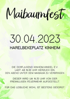 Die Dorfjugend Kinheim-Kindel e.V. lädt ab 16.00 Uhr herzlich ein, den Abend unter dem Maibaum zu verbringen.