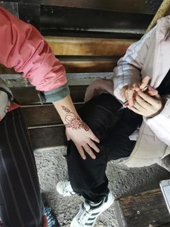 Die kleinen Besucher konnten sich von Clarissa Eltges (Mitglied des Jugendparlaments) und ihrer Schwester Emely bunte Motive auf ihr Gesicht zaubern oder sich von Saima, Ragad und Hanadi mit kunstvollen Henna Designs verschönern lassen.