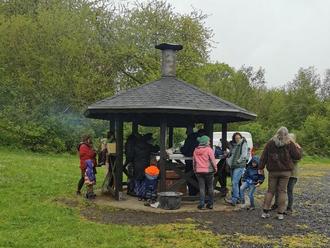 Nachdem wir uns durch Regen, Hagel und Sonnenschein gekämpft hatten, wurden wir auf dem Mont-Royal von Max Bölcker(Mitglied des Jugendparlaments) mit einem gemütlichen Feuer empfangen. Das wärmende Feuer belebte Geist und Körper, die angebotene Verpflegung tat ihr Übriges dazu, so wärmte man sich auch von Innen.