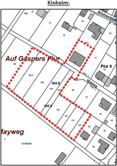 | Gemarkung Kinheim; | Flur 6, Flurstücke 54/1 (teilweise), 75 (teilweise), 100, 101, 102, 103, 104, 105, 106, 107/1, 109 (teilweise), 110 |