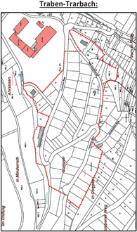| Gemarkung Trarbach; | Flur 13, Flurstücke 659/2, 659/3, 660/1, 725, 726/2, 727/2, 729/2, 732/2, 1812/733 (teilweise); Flur 31, Flurstücke 27, 28, 29, 30, 31, 32, 33, 34, 35, 36, 37, 38, 39, 40, 41, 42, 43, 44, 49, 50, 51, 52, 59/2 (teilweise), 61, 62, 63, 64, 65, 66, 67, 68, 69, 70, 71, 72, 73, 74, 75, 76, 77, 78, 79, 80, 81, 82, 83, 84, 85, 86, 87, 88, 89, 90, 91, 92, 93, 94, 95, 96, 97, 98, 99, 100, 101, 102, 103, 104, 105, 106, 107, 108, 109, 110, 111, 112, 113, 114, 125 (teilweise), 138, 139, 140, 141; Flur 35, Flurstücke 37, 38, 39, 40, 41, 43 (teilweise), 45 (teilweise) |