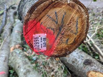 Die zur Versteigerung kommenden Polter sind mit kleinen weißen Schildern nummeriert und können ab sofort besichtigt werden.