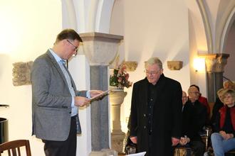Ebenso bedankte sich Heintel bei den treuen Gästen und Zuhörern, die aus Nah und Fern anreisen, um diese Konzerte zu besuchen.Zu großer Letzt bedankte sich der Bürgermeister bei Gerd Vockensperger für die vielen Jahre unermüdlichen Einsatz bei der Durchführung solcher Konzert- und Kulturveranstaltungen im Kloster Springiersbach.