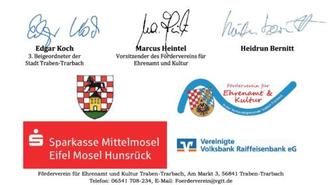 Die Diskussion leitet Arne Houben (Inhaber des Rhein-Mosel-Verlags, Bullay). Ihm zur Seite stehen Heidrun Bernitt (Biografin, Bernkastel-Kues), Ulrich Bücholdt (Bauhistoriker, Bochum), Marcus Heintel (Förderverein für Ehrenamt und Kultur, Traben-Trarbach) sowie Edgar Koch (3. Beigeordneter der Stadt Traben-Trarbach).