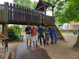 Die „Aktiven Rentner“ in Bausendorf waren mal wieder fleißig und haben auf dem Spielplatz in Bausendorf ein Spiel- und Klettergerät wieder instandgesetzt. Hierbei wurden die maroden Standpfosten in metallene Pfostenschuhe eingepasst und einbetoniert, die Unterzüge der Brücke und deren Belag erneuert.