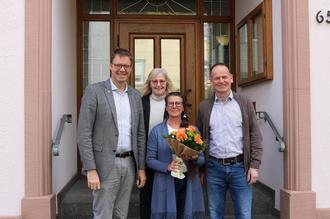 Foto: v.l.n.r.: Bürgermeister Marcus Heintel, Personalratsvorsitzende Martina Mettler, Eva Bihler, Fachbereichsleiter Frank Thullen