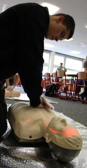 Damian Storz (JuPa Traben-Trarbach) übt sich an der Herzdruckmassage