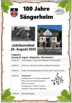 Am Sonntag, den 24. August 2025, feiern wir in Burg das 100-jährige Jubiläum des Sängerheims.