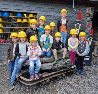 Von unserem fachkundigen Grubenführer bekamen wir gezeigt, wo die Fledermäuse im Winter wohnen und uns wurde erklärt, warum die Bergleute früher nicht sonderlich groß wurden (das Märchen von den 7 Zwergen). Es wurde anschaulich gezeigt, wie schwer und mühsam die Arbeit damals unter Tage war und dass damals auch schon Kinder mitarbeiten mussten. Ein echter Knochenjob!!! Außerdem lernten wir die Schutzpatronin der Bergleute und ihre Geschichte kennen, die hl. Barbara. Wir durften Katzengold schürfen und zur Stärkung gab es eine leckere Bratwurst und Eis.