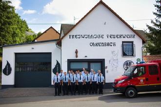 mit feierlicher Einweihung der neuen Fahrzeughalle im Zusammenhang mit dem Um- und Erweiterungsbau des Feuerwehrgerätehauses Olkenbach